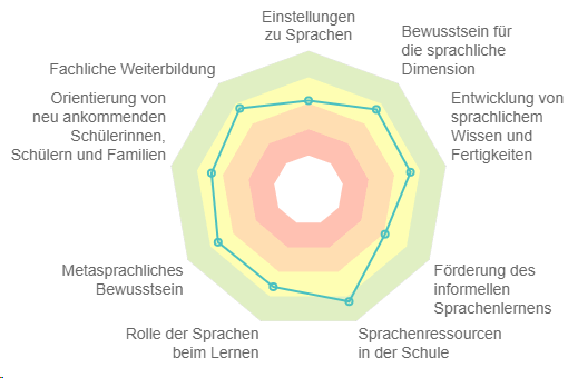 Bewusstsein für die sprachliche Dimension bedeutet, ganz allgemein das sprachliche Lernen zu betonen, zu verstehen, wie wichtig es für das gesamte schulische Personal ist, als Sprachvorbild zu agieren und den Lernenden herausfordernde Aufgaben zu bieten.